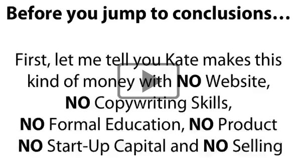 Of course, this all sounds too good to be true. Deiss knows this, so he asks the following question: “So how did [Kate] go from being broke and unemployed to banking as much money a month as a 3rd year airline pilot working just a few hours a day, whenever she feels like it… mostly from her cell phone?”