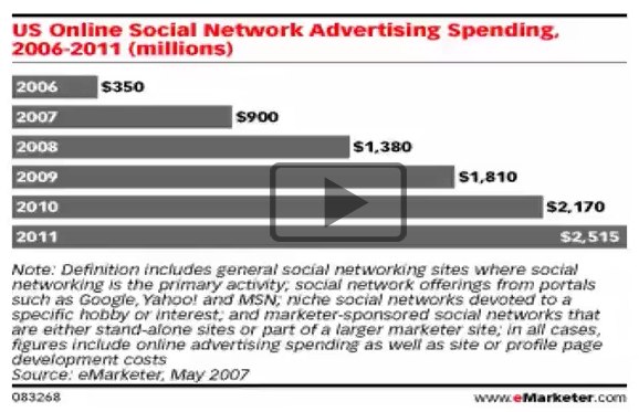 Here’s another gem. This bar chart shows “US Online Social Network Advertising Spending” from the years 2006-2011 in millions of dollars.