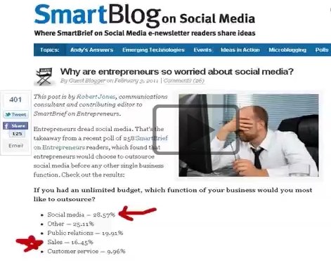 The first sentence of the article says it pretty clearly: “Entrepreneurs dread social media.” In other words, they don’t like managing social media, and they see it as something that can be more easily outsourced.