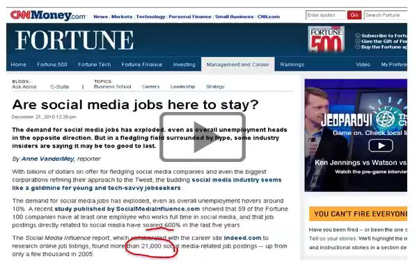 Here Deiss points to the 21,000 job postings related to social media as of December 2010.